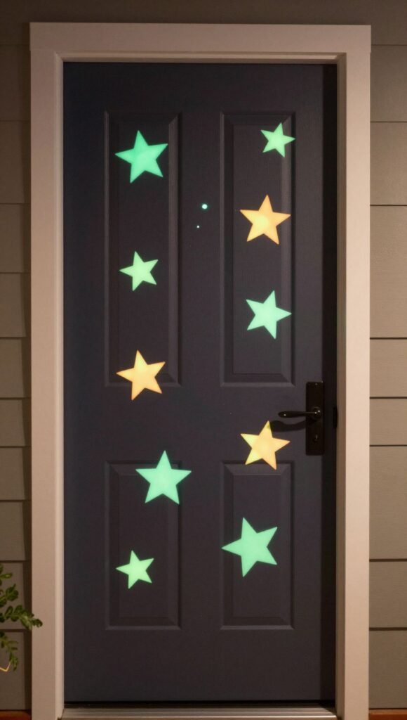 Light up the night, literally. Apply glow-in-the-dark stars, shapes, or even custom designs to your door. Perfect for those late-night returns. Get some UV-reactive paint for an extra punch under certain lights, but make sure it’s removable. It’s practical for finding your room in dimly lit hallways and undeniably cool.