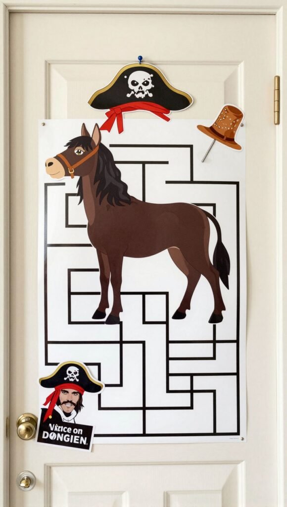 Turn your door into a mini scavenger hunt. Create a simple magnetic game on your door. Maybe a “pin the tail on the donkey” variation with a pirate theme, or a magnetic maze. Include a small prize for anyone who solves it, like a fun sticker, but don’t make it too hard. This is engaging, unique, and makes your door a destination in itself for curious passersby.