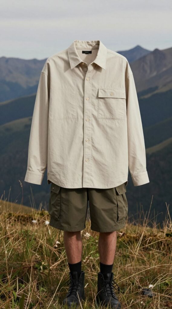 Pro tip: Opt for neutral tones for the shirt and shorts to keep the look sophisticated. This outfit is perfect for those who want to blend comfort with a touch of street style.