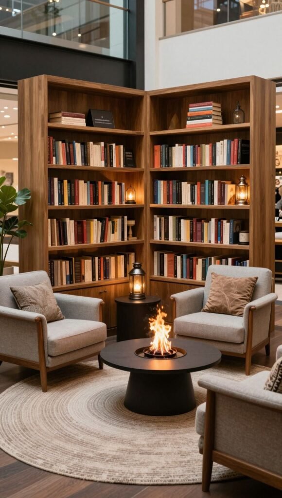 Arrange cozy armchairs, bookshelves, warm lanterns, and maybe a soft rug or a small firepit. Place this nook slightly off the main path, perhaps tucked behind some trees or a hedge, for that truly secluded feel away from the Plaza’s main thoroughfare.