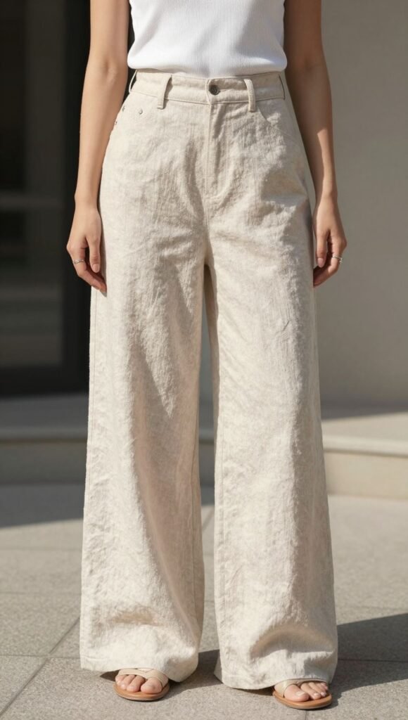 Opt for wide-leg or straight-leg styles in neutral tones like white, beige, or navy. They pair perfectly with a simple tank or a crisp button-up. You will thank us when the afternoon sun hits.