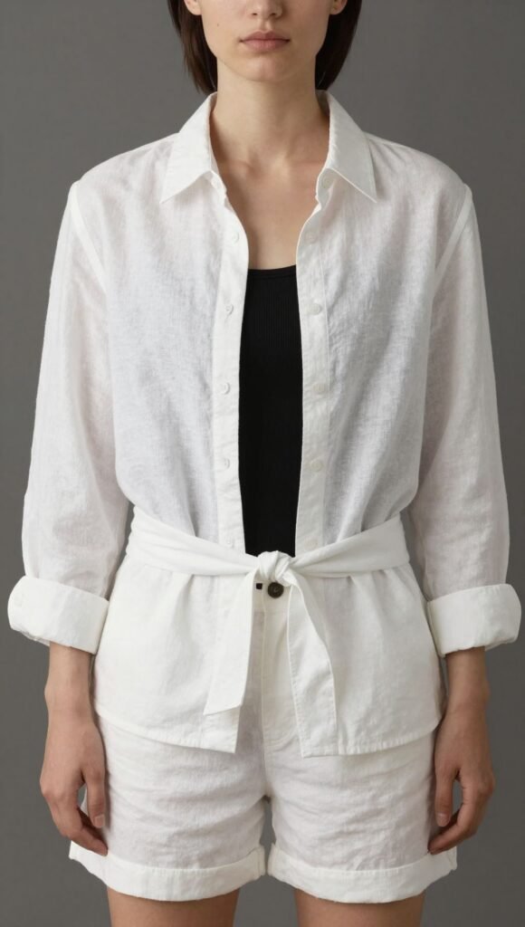 Wear it open over a tank top, buttoned up and tucked into tailored shorts, or tied at the waist. White, light blue, or striped options are always a win. You will look put-together without trying too hard.